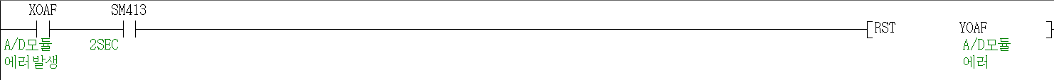 2초마다 A/D모듈 에러발생 신호가 발생하면 Y0AF(A/D모듈 에러) 를 디바이스 OFF시킨다.