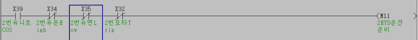 X34(2번유온 High), X35(2번 유면 LOW), X32(2번 모터 Trip) 은 신호가 계속해서 들어옴.