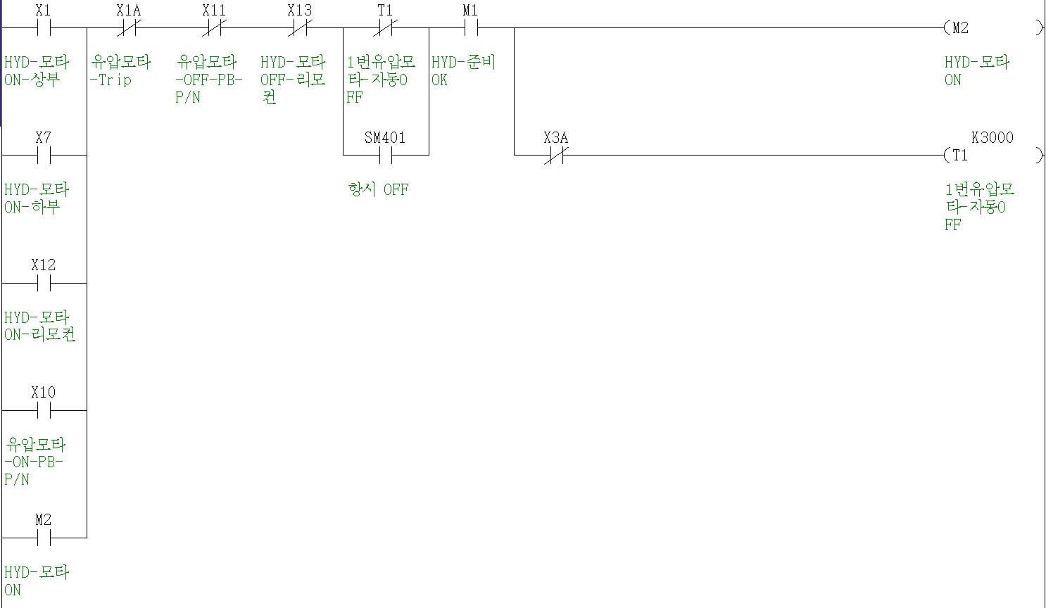 HYD-1번모타 ON이 되면 유압모터 MC가 켜진다. 유압모터가 켜졌다는 램프에 불이 들어온다.