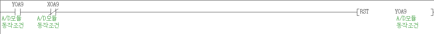 A/D모듈 동작조건의 실행되면 지정된 디바이스를 OFF한다. X0A9(A/D모듈 동작조건) 이 작동되면 Y0A9(동작조건)은 끄지않는다.
