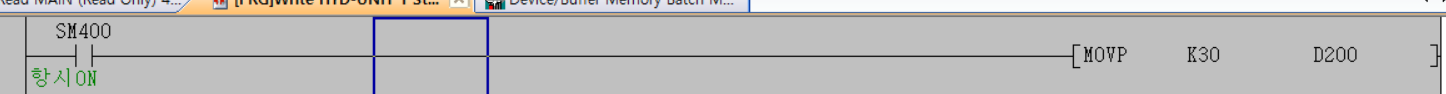 = 전진 하는 버튼 3개중에 아무거나 하나 눌렀을 때 3초에 한번씩 D200에 값이 1씩 증가하는데, 지금 보면 병렬로 되어있다. 그래서 버튼을 누르면 K30 정수에 맞춰 D200과 동일해지면서 3초 라는 시간이 되고 그러면서 램프가 꺼지는데....