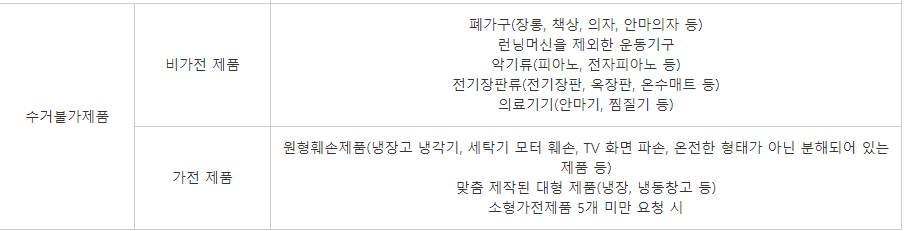 -인력으로 수거가 불가능한 제품은 배출 주민이 수거가 가능한상태로 되도록 조치후 수거