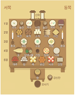 고춧가루나 마늘 양념을 한 음식도 올리지 않는다.